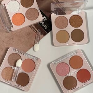 مجموعة من ظلال العيون بأربع ألوان في كل علبة، تتنوع بين الألوان البرونزية، الذهبية، واللمعات اللامعة، لتضفي لمسة من التألق على المكياج. تحتوي كل علبة على ألوان متنوعة من المات واللامع لتناسب مختلف الإطلالات اليومية والسهرات