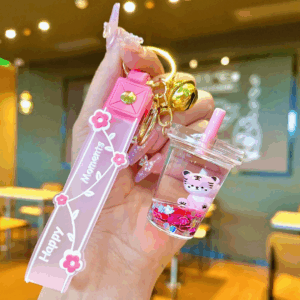 تصميم لطيف: تصميم سلسلة كوب الشاي الفقاعي اللطيف على شكل قطة يجعل سلسلة المفاتيح لطيفة وممتعة للغاية. يبدو السائل المتحرك