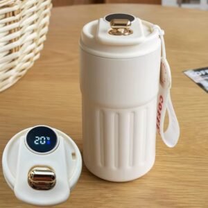 أكواب قهوة قابلة لإعادة الاستخدام للسفر سعة 450 مل بشاشة ليد تعرض درجة الحرارة، كوب ماء ذكي من الفولاذ المقاوم للصدأ 316 مقاوم للتسرب للمشروبات الساخنة والباردة