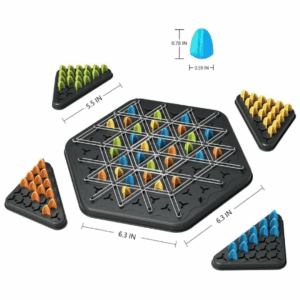 تحتوي اللعبة على لوح سداسي التصميم مع قطع ملونة جذّابة (أصفر، أزرق، برتقالي، وأخضر)، مما يجعلها مثالية للعب الجماعي بين الأصدقاء أو العائلة.