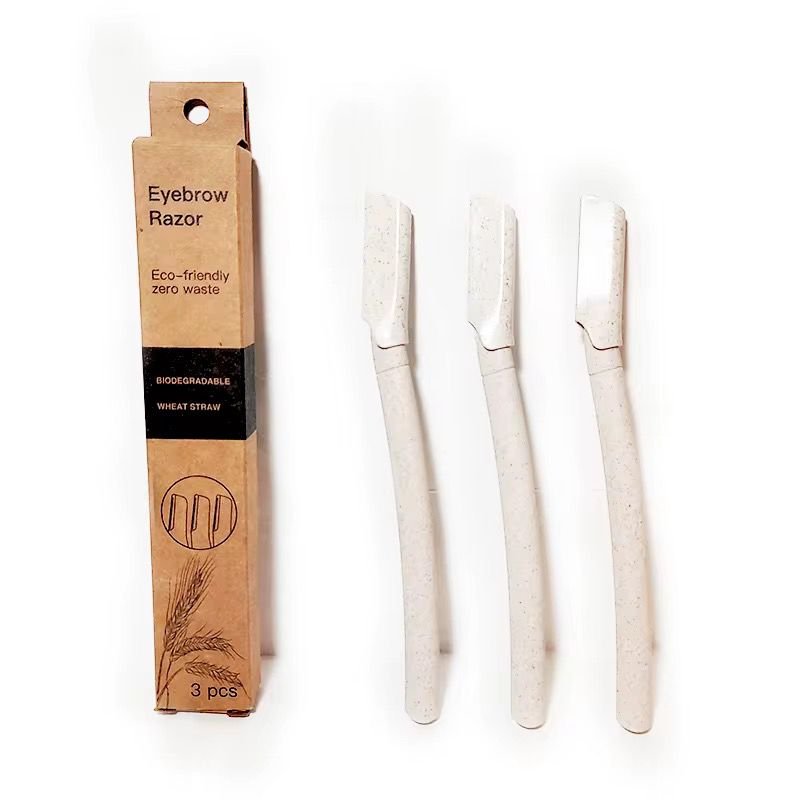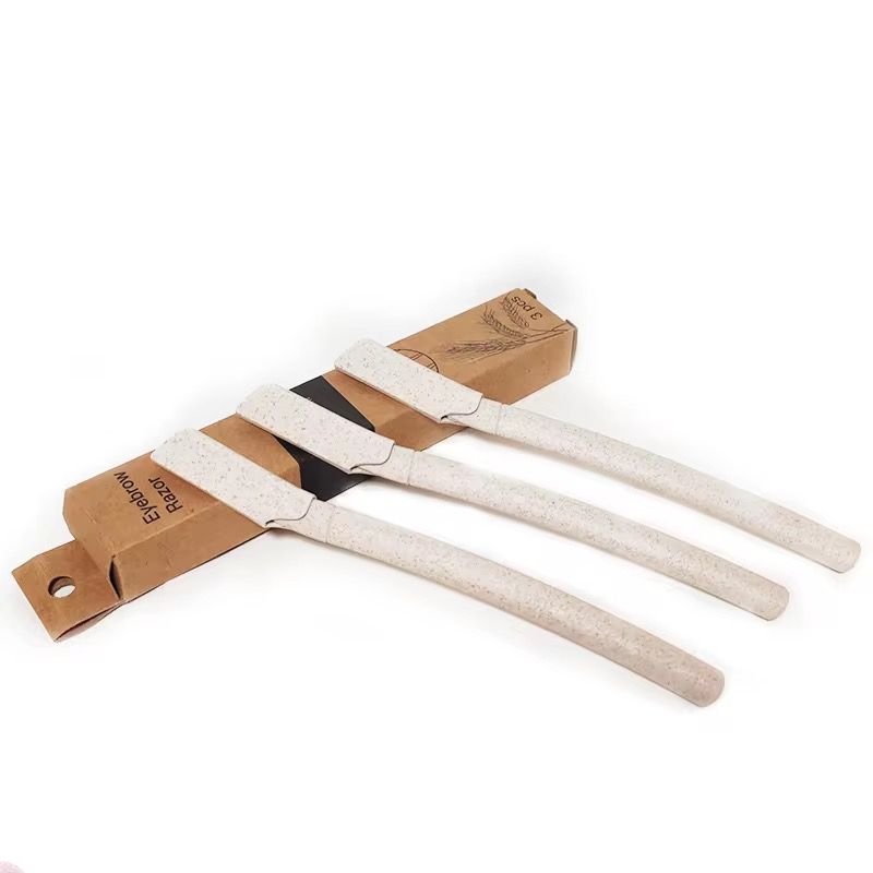 شفرة حلاقة آمنة وعملية مصنوعة من خامة صديقة للبيئة تشبه ألياف القمح، بتصميم خفيف ومريح لليد.
